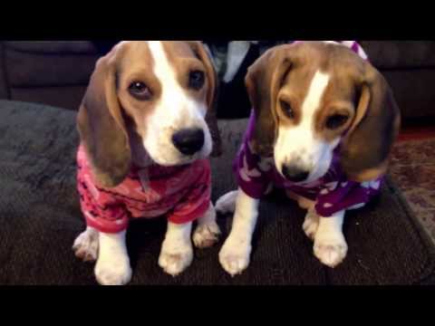 Arli & Roo eat a cashew. Cute beagle puppies, 15wks old. - Eat With Arli - 15wk old beagle sisters, in ridiculous hoodies to keep them warm.