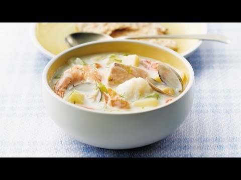 How to Make Seafood Chowder | Soup Recipe | Allrecipes.com - Canadian Seafood Chowder - Get the recipe for Seafood Chowder at http://allrecipes.com/Recipe/Seafood-Chowder/Detail.aspx. Watch how to make a creamy seafood chowder that's lower in ...