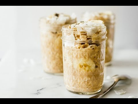 Overnight oats coconut banana breakfast jar - Banana Coconut Overnight Oats - Shop for kitchen gadgets here:http://amzn.to/2vgatuL Here's a quick and easy overnight oats breakfast jar using coconut and banana with the oatmeal.